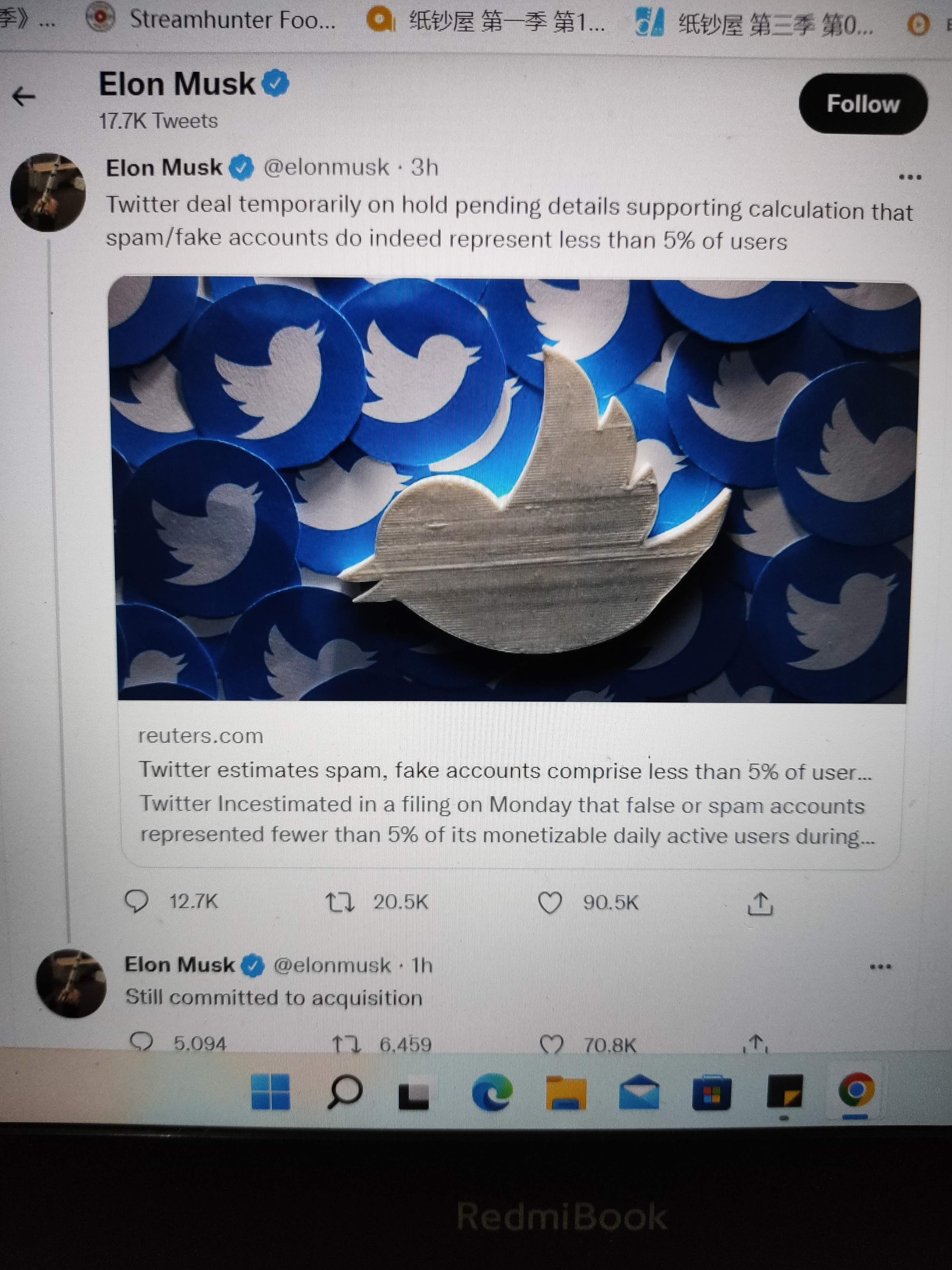 $Twitter(TWTR)$Elon Musk is still committed to acquisition of Twitter.