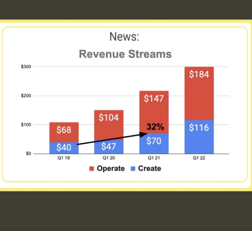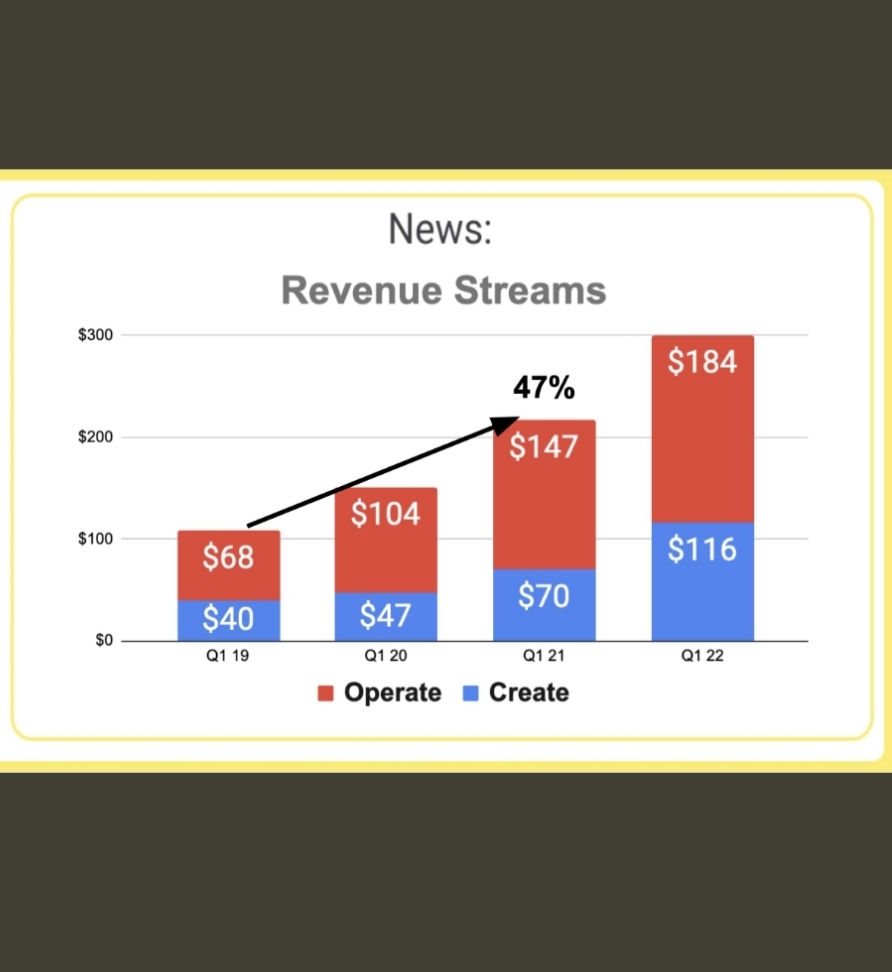 CREATE: subscription revenue that can only grow with new customers or upgrades, so it grows more slowly