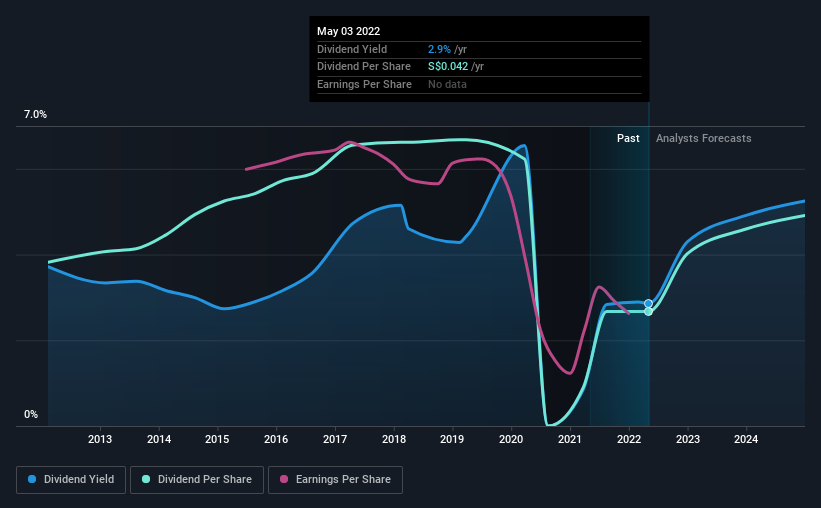 The company's next dividend payment will be S$0.021 per share. Last year, in total, the company distributed S$0.042 to shareholders. Calculating the last year's worth of payments shows that ComfortDelGro has a trailing yield of 2.9% on the current share price of SGD1.47. We love seeing companies pay a dividend, but it's also important to be sure that laying the golden eggs isn't going to kill our golden goose! As a result, readers should always check whether ComfortDelGro has been able to grow its dividends, or if the dividend might be cut.