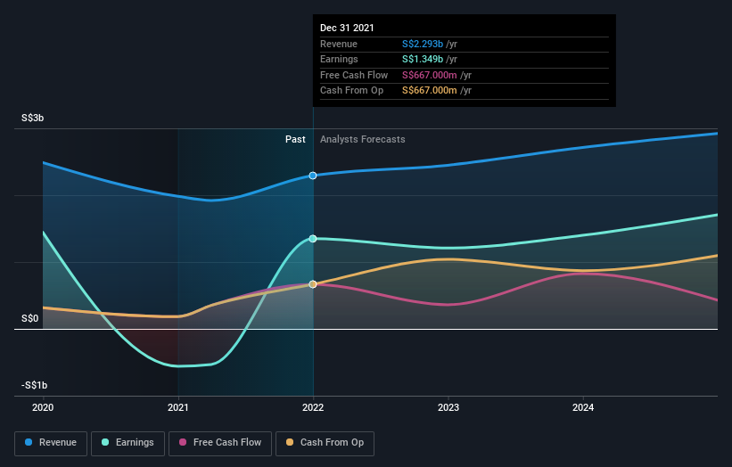 We can see that CapitaLand Investment does have institutional investors; and they hold a good portion of the company's stock. This suggests some credibility amongst professional investors. But we can't rely on that fact alone since institutions make bad investments sometimes, just like everyone does. When multiple institutions own a stock, there's always a risk that they are in a 'crowded trade'. When such a trade goes wrong, multiple parties may compete to sell stock fast. This risk is higher in a company without a history of growth. You can see CapitaLand Investment's historic earnings and revenue below, but keep in mind there's always more to the story.