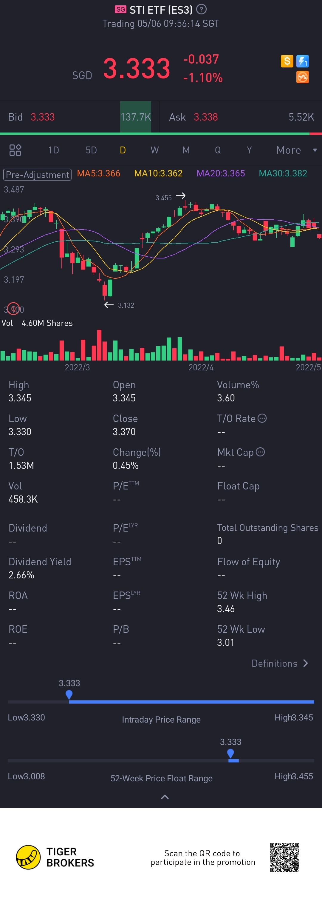 $STI ETF(ES3.SI)$won't go broke won't get rich