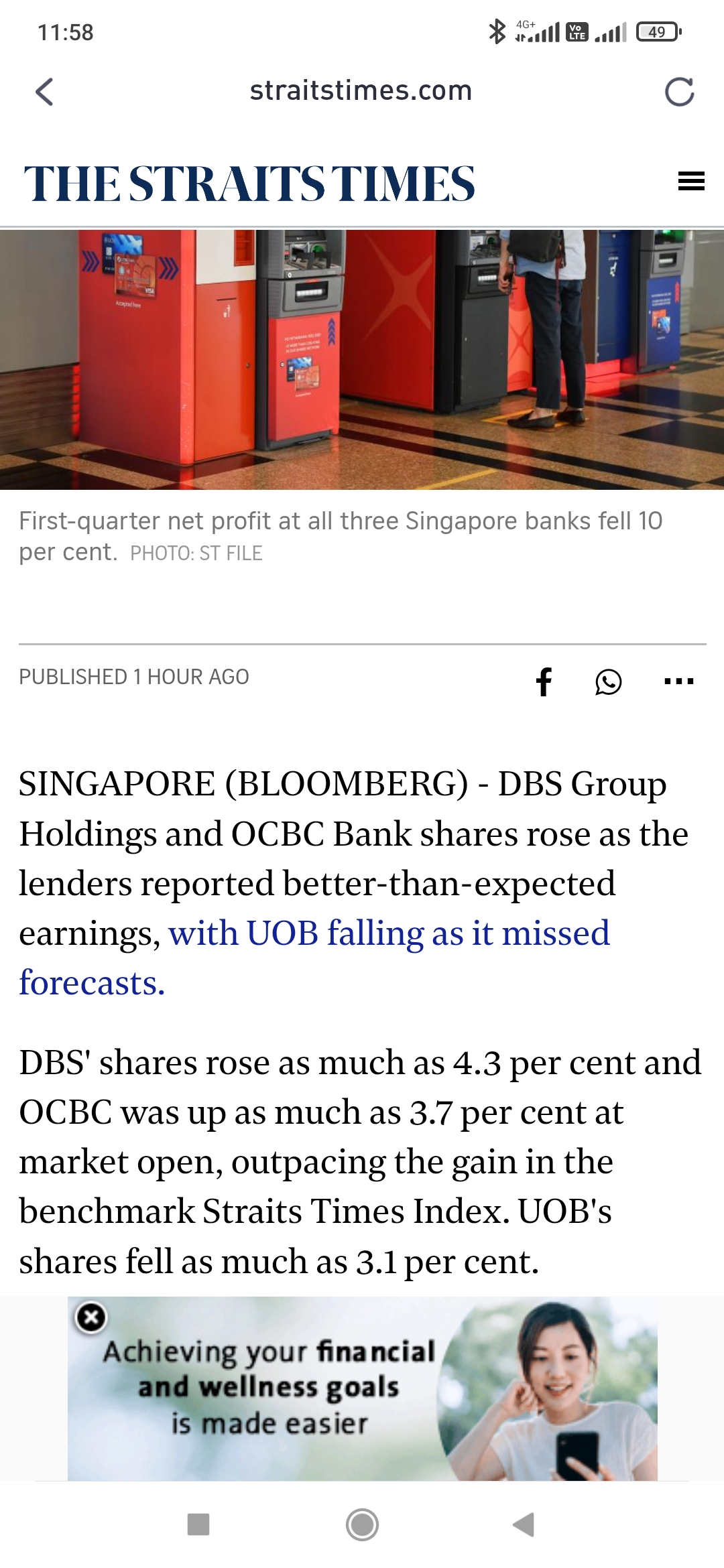 $UNITED OVERSEAS BANK LIMITED(U11.SI)$ will be stuck in 28 to 30 range until it report Q2 earnings in August.