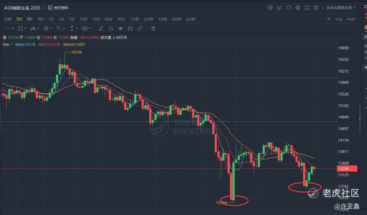 Finally, let's track the trend of A50 index. As shown in the above figure, A50 fell back again this week to test the support of 12800 line, and stabilized, echoing the previous low of 12294, which is equivalent to forming the second low. It is expected that the short-term shock will continue. After the Fed interest rate meeting landed on May 4 and the epidemic situation in Shanghai and Beijing became clear in mid-May, the market is expected to set off an upward trend.