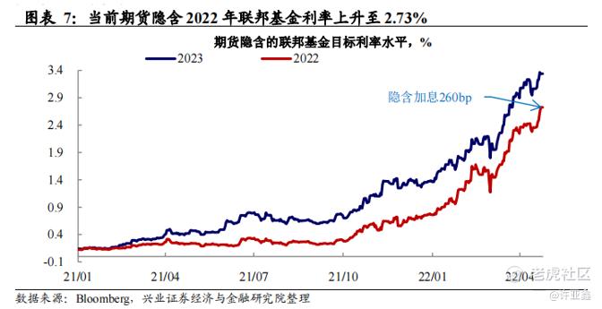 Now we are in the third stage, that is, in the federal funds futures market, the year-end interest rate forecast has soared to 2.5-2.75%, and the total number of expected interest rate increases has reached 10 times (each time by 25 basis points).