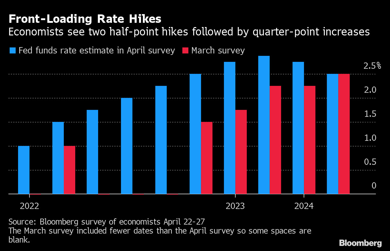 The Fed lift the benchmark lending rate by 50 basis points at the conclusion of its March 15-16 Federal Open Market Committee meeting, essentially equivalent to two hikes because the central bank typically raises rates by 25 basis points. For instance, of the 40 interest-rate increases since 1989, only five were for 50 basis points. The probability of a half-percentage point rate increase is 37%, according to the Fed funds futures market as of Thursday afternoon.