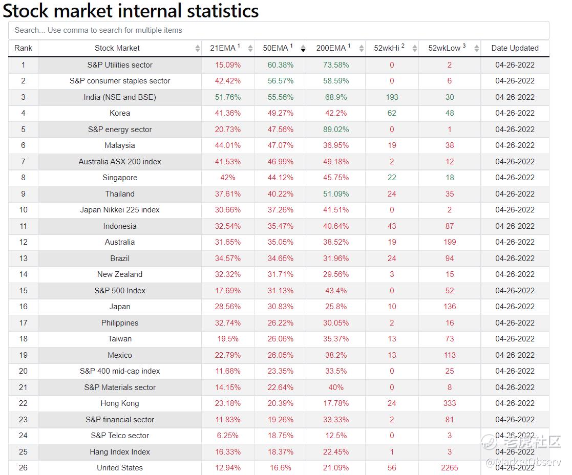 Stock market internals for U.S and China 26Apr2022 (https://market-observer.addvaluedonoevil.com/stock-market-internal-statistics/)