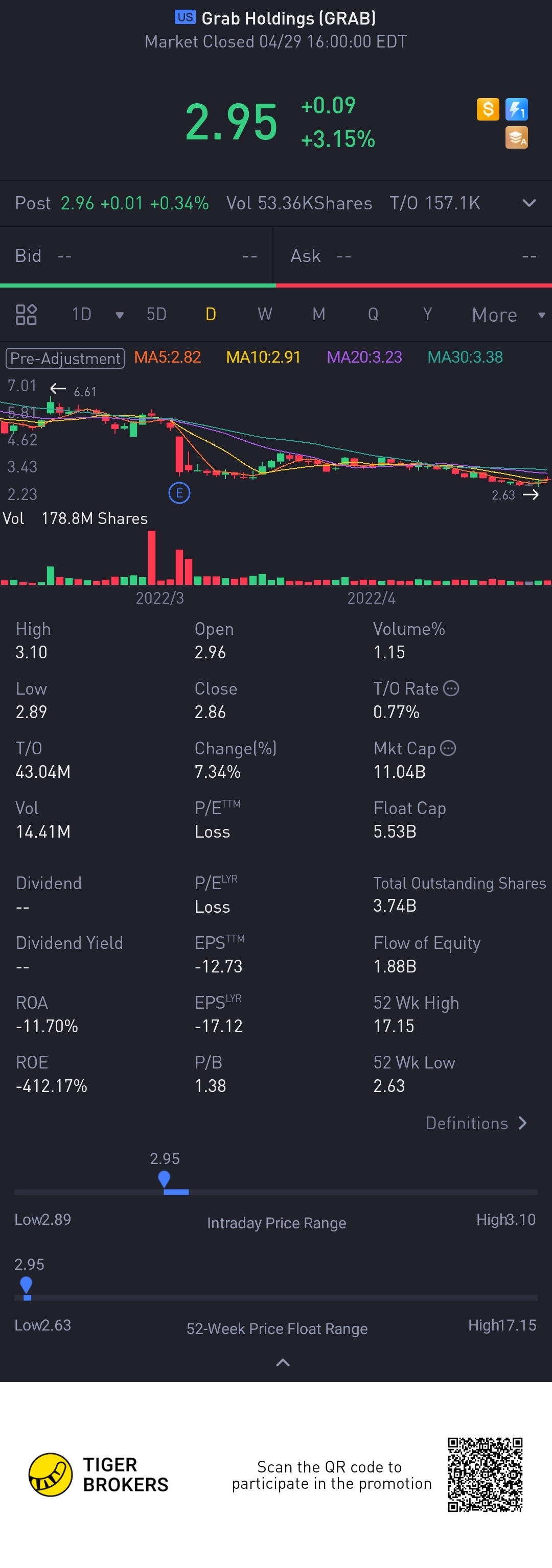 $Grab Holdings(GRAB)$ prepare for another round of downward surprises. The company has an unprofitable model where if it raises fares too much, ppl will just switch to taxis. It's food delivery space has too many competitors as well. Target price is $1.10
