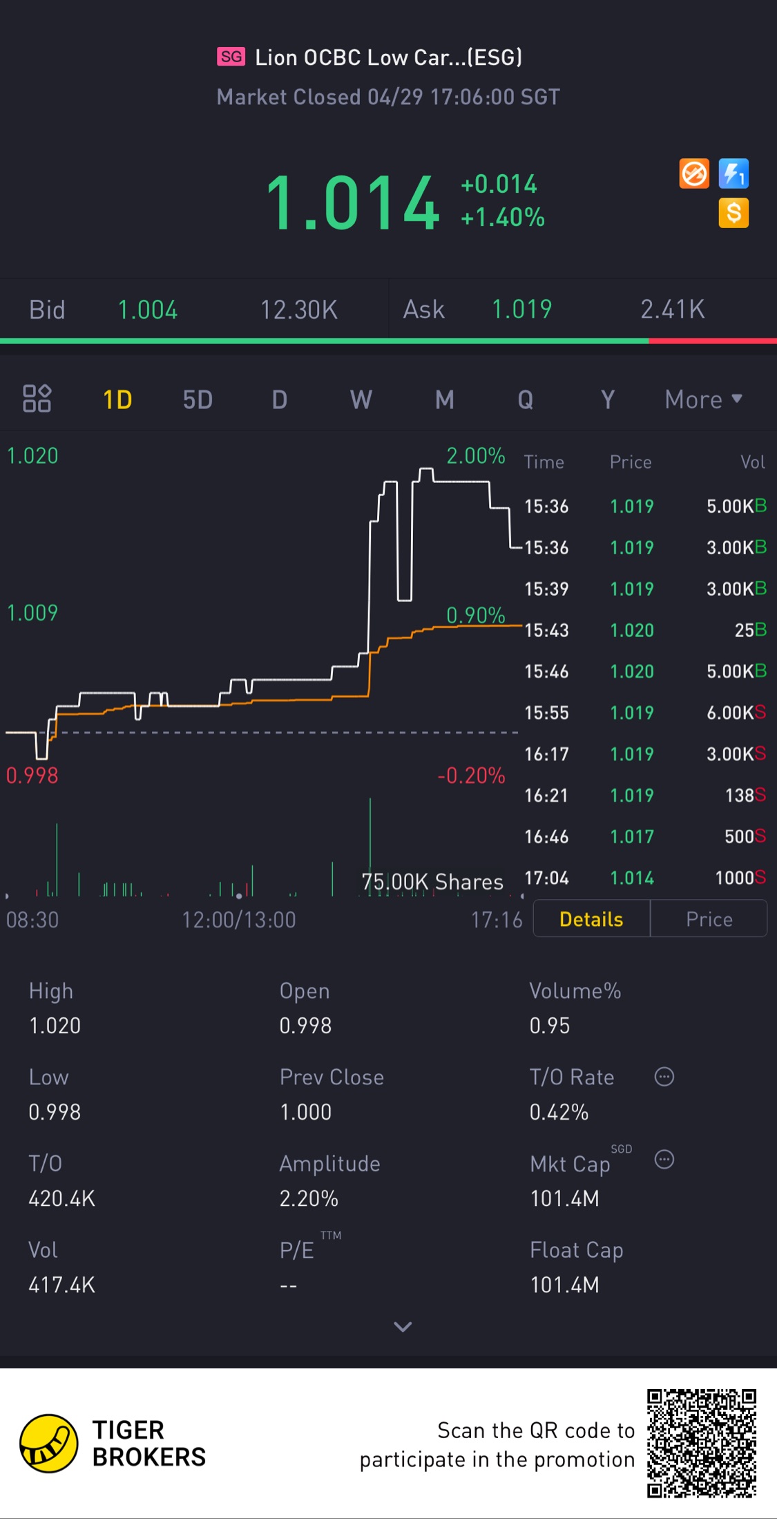$Lion OCBC Low Carbon(ESG.SI)$Bought duringIPO. Heng heng and moves up slowly đđđ