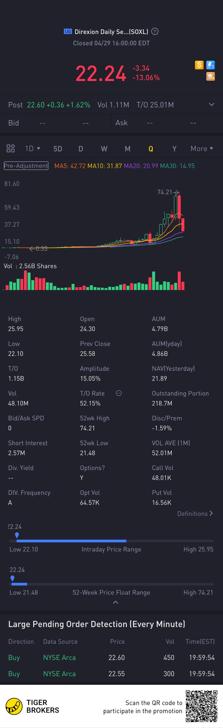 $Direxion Daily Semiconductor Bull 3X Shares(SOXL)$Added some