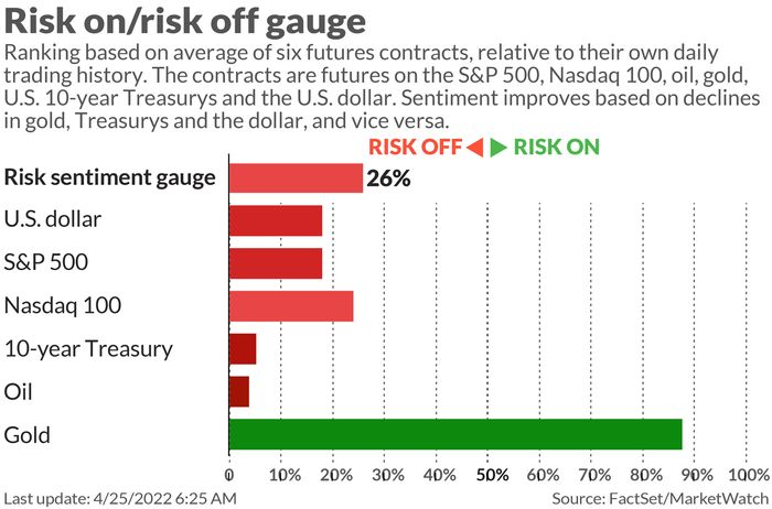 The AAII weekly investor survey show the percentage of bearish respondents surged to 59%.