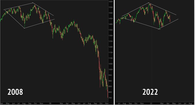 I noticed a chart from Twitter, this shows that the current trend is similar to what happened in 2008, this is a scary reminder, right?