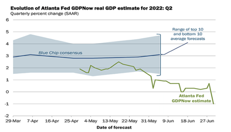 What is even more frightening is that on June 30th, the latest estimate of real GDP growth (quarterly adjusted annual growth rate) in the second quarter of 2022 by GDPNow model was-1. 0%, which was lower than 0.3% on June 27th.
