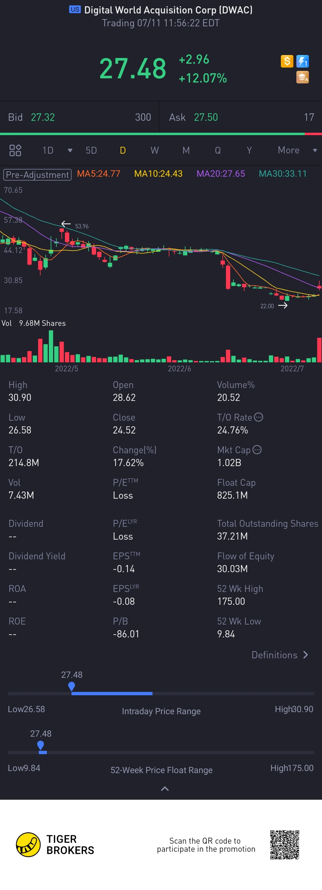 $Digital World Acquisition Corp(DWAC)$looking best on my watchlist currently.