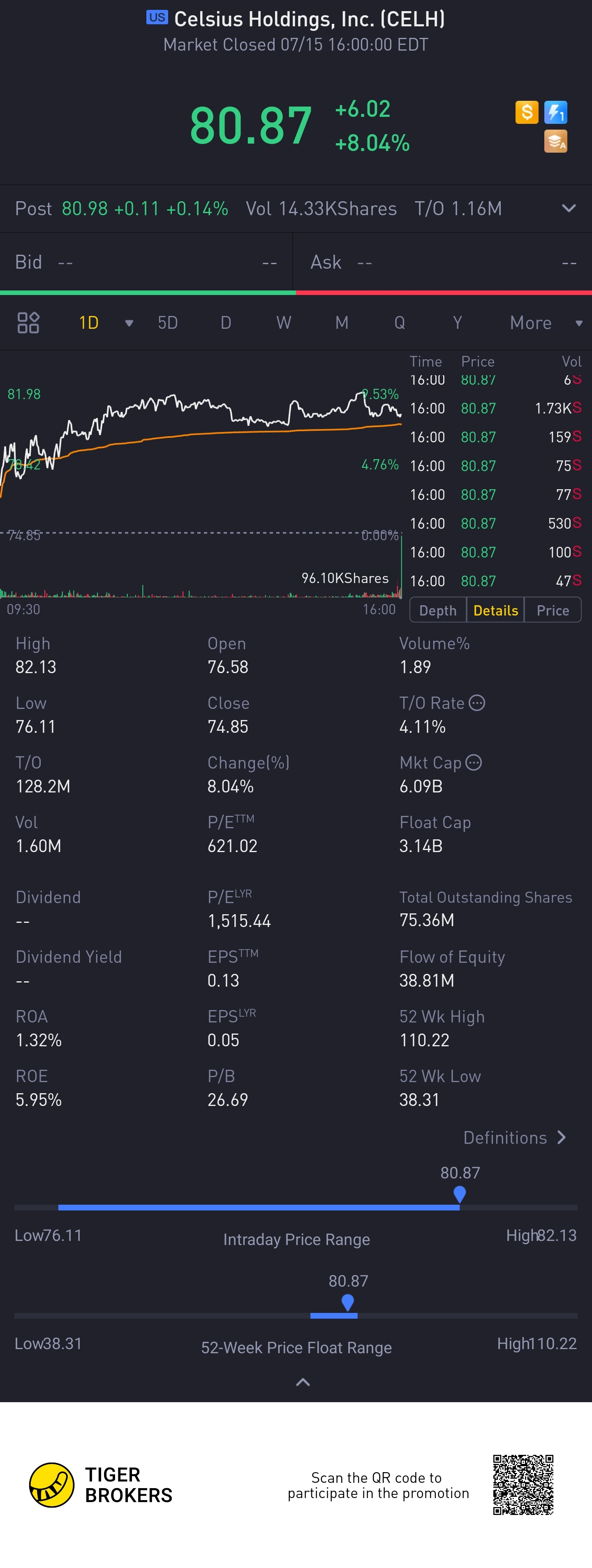 $Celsius Holdings, Inc.(CELH)$nice move up. Indeed one of the stronger stock in this bear market. Now positive YTD