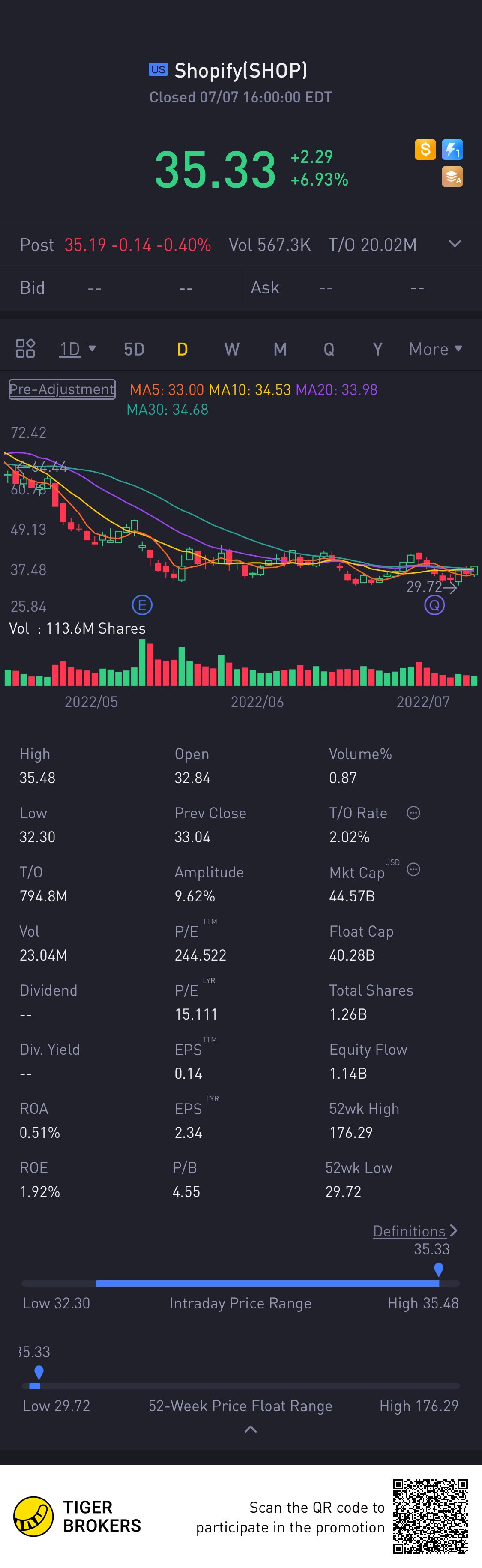 $Shopify(SHOP)$A bit disappointed on this stock, even though splitted but still .... [Sad] [Sad] [Sad] [Sad]