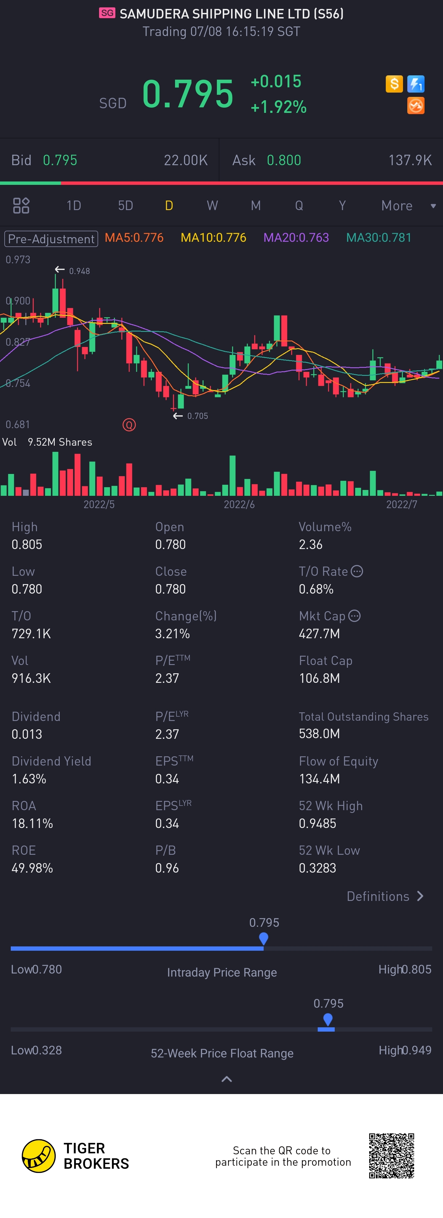 $SAMUDERA SHIPPING LINE LTD(S56.SI)$will it reach $1.00?