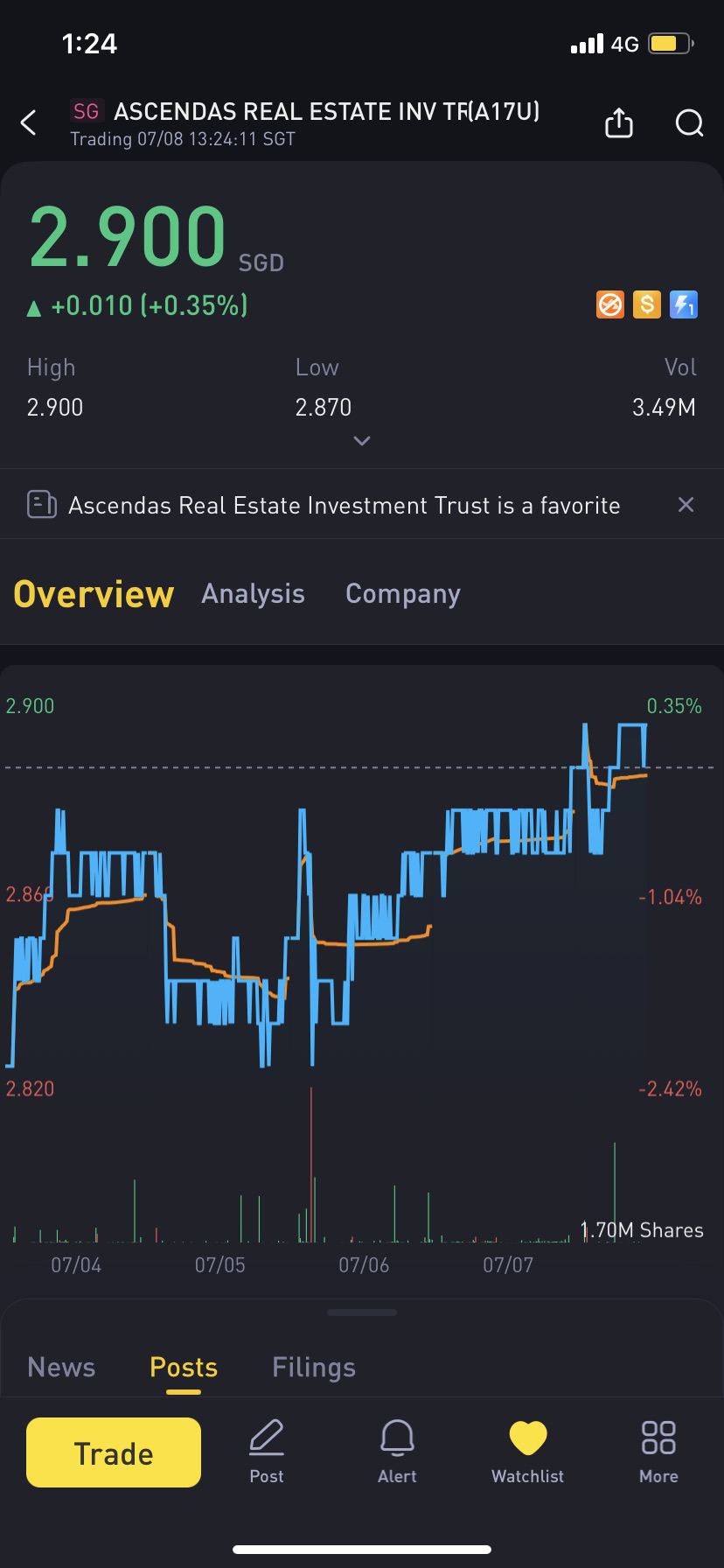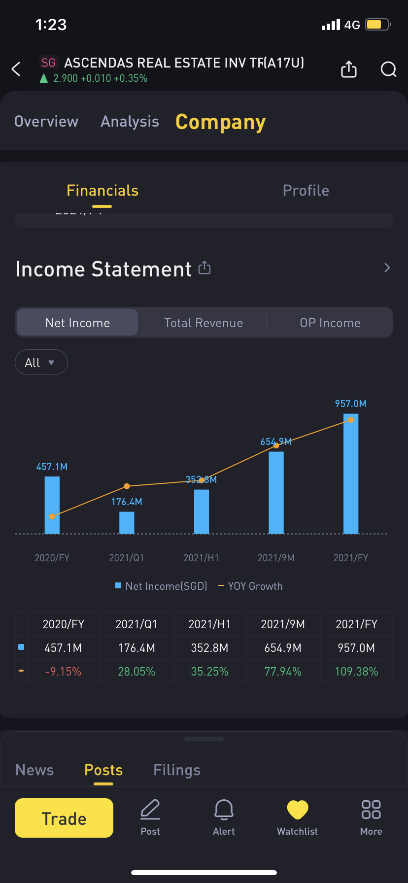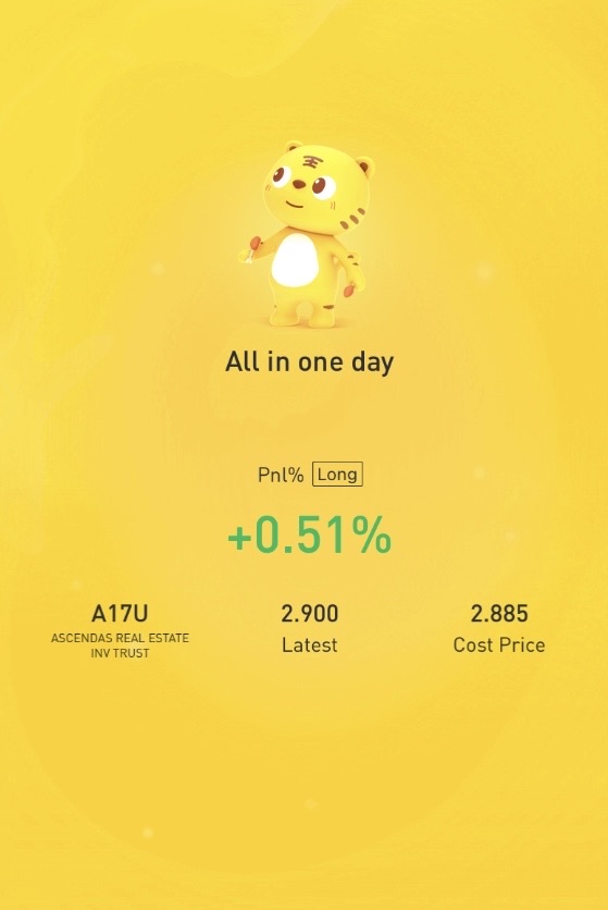 $ASCENDAS REAL ESTATE INV TRUST(A17U.SI)$The stock price and net income of Ascendas Reit are trending upwards, hopefully it will continue to go up to the moon 🚀🚀 and change my Tiger expression from “All in one day!” to “To the Moon!”. Then I will be able to feel the warm and be very contented.