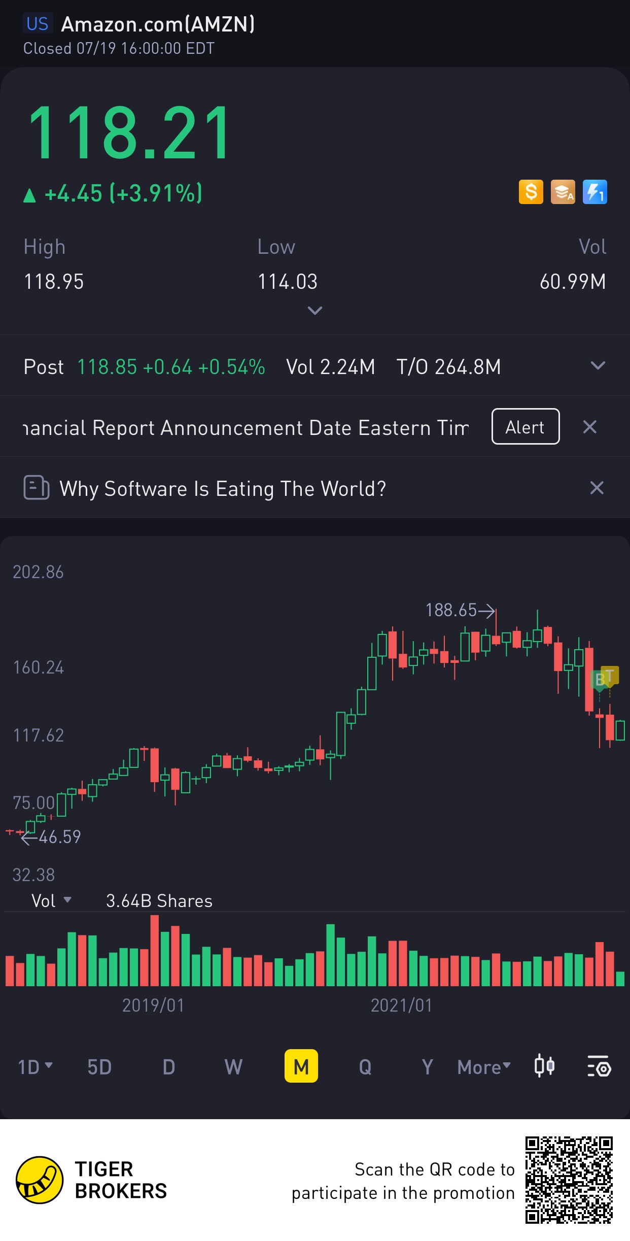 $Amazon.com(AMZN)$For the first time in what feels like a long time (maybe since the 20-for-1 split?), Amazon is in the green. The recent Prime Day(s) would have certainly played a part. Hopefully this continues.