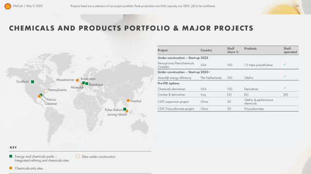 Shell is also a key player globally in the petrochemicals space with ethylenes, olefins, resins, and lubricants being advantaged by its position in gas and condensates. Shell Norco and Deer Park are huge installations delivering millions of pounds of these materials annually.