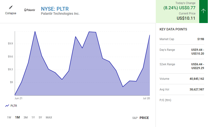 Palantir is a much smaller company than Salesforce, but it attracted a lot of attention with its direct listing in September of 2020. Its stock started trading at $10, soared to an all-time high of $39 last January during thememe-stockrally, but now trades at about $9.