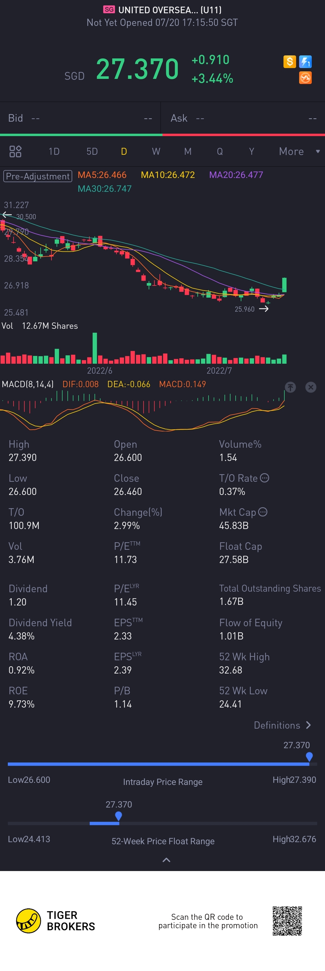 $UNITED OVERSEAS BANK LIMITED(U11.SI)$Nice.... UOB and DBS up more than 3% yesterday and well above the previous high. Congrats to all tigers bought at the "low".