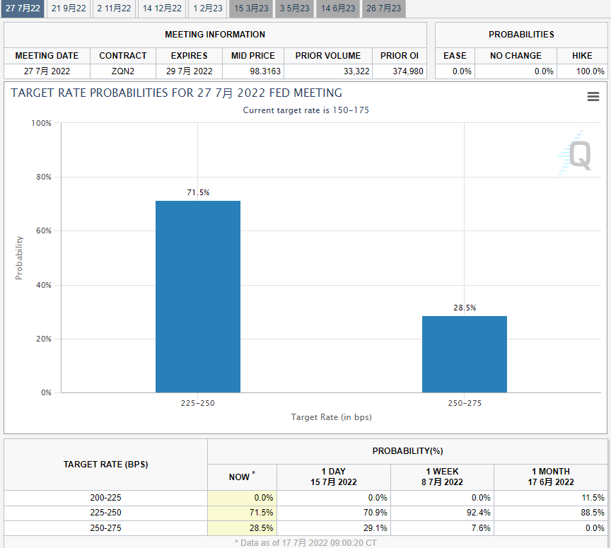 After the CPI data hit a high level again, the market once priced in a 100 basis point interest rate hike. However, with the digestion of time, we can see that the probability of 75 basis points has returned to the dominant position at the beginning of this week. This may mean that the final situation of this resolution will change in the next nine days. The only thing to keep in mind is that the result can be basically set with a probability of more than 70%.