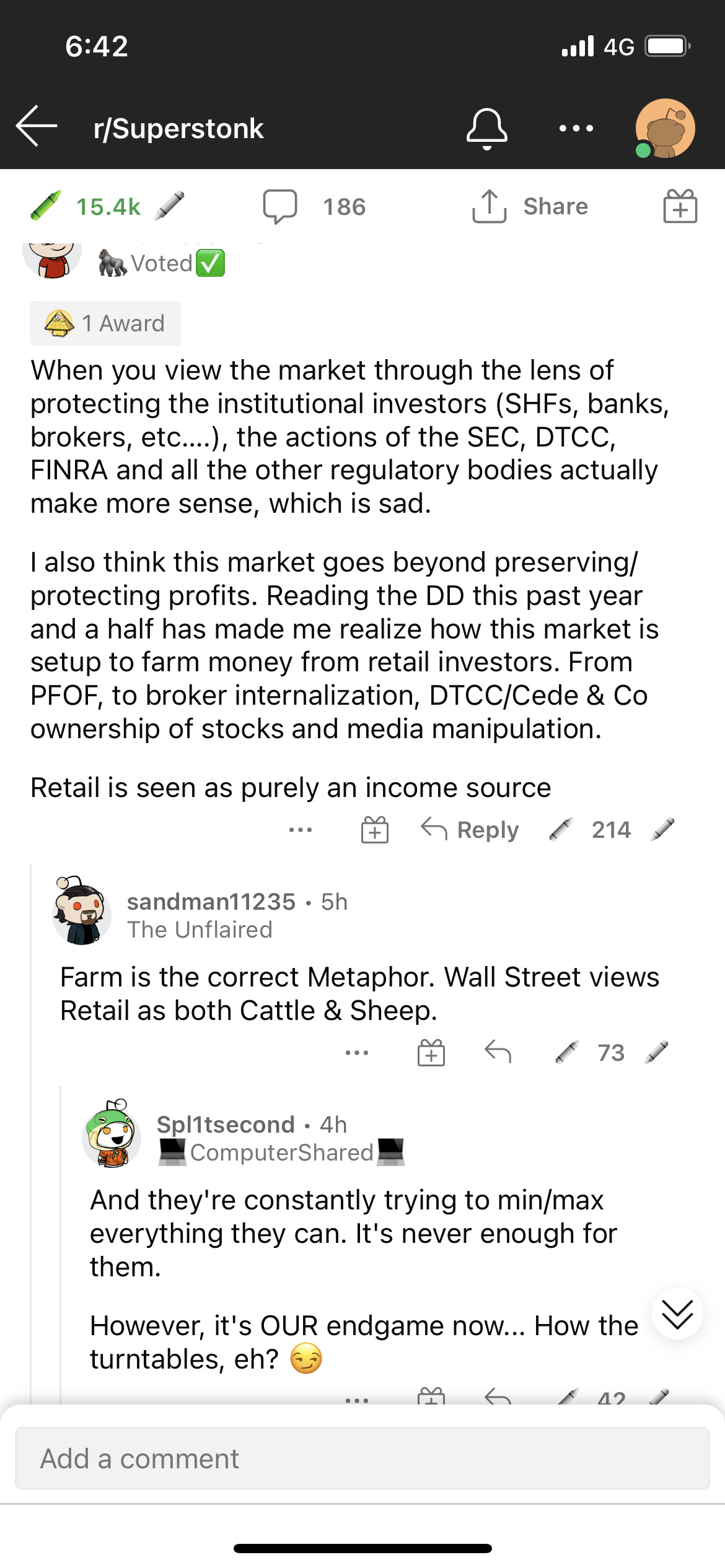 $GameStop(GME)$Do not believe the news from MSM. Follow SuperStonk at Reddit Forum for more information. Gather everyone y'know to Buy, Hodl and DRS $GME shares. GameStop is a great company that they were so scare of losing all their years of profit generated from retail because of their unknown high shorts position in $GME. - NFA