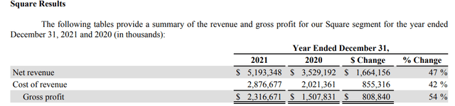 Block is obviously aware of this dependence of Cash App on Bitcoin and in fact within theannual reportwarned its shareholders about it. "App customers, increase in the number of business accounts, broader macroeconomic recovery, and from government stimulus and relief programs in place in 2021. These relief programs provided government aid and unemployment benefits which resulted in an increase in consumer spending and inflows into our Cash App ecosystem. Cash App revenue growth may not be sustained at the same levels in future periods and may be impacted by the enactment of further stimulus relief and benefit programs, as well as the demand and market prices for bitcoin, amongst other factors." In the current uncertain environment in which the so-called "flight to quality" is taking place, I don't see how this segment of Block cannot get worse this year.