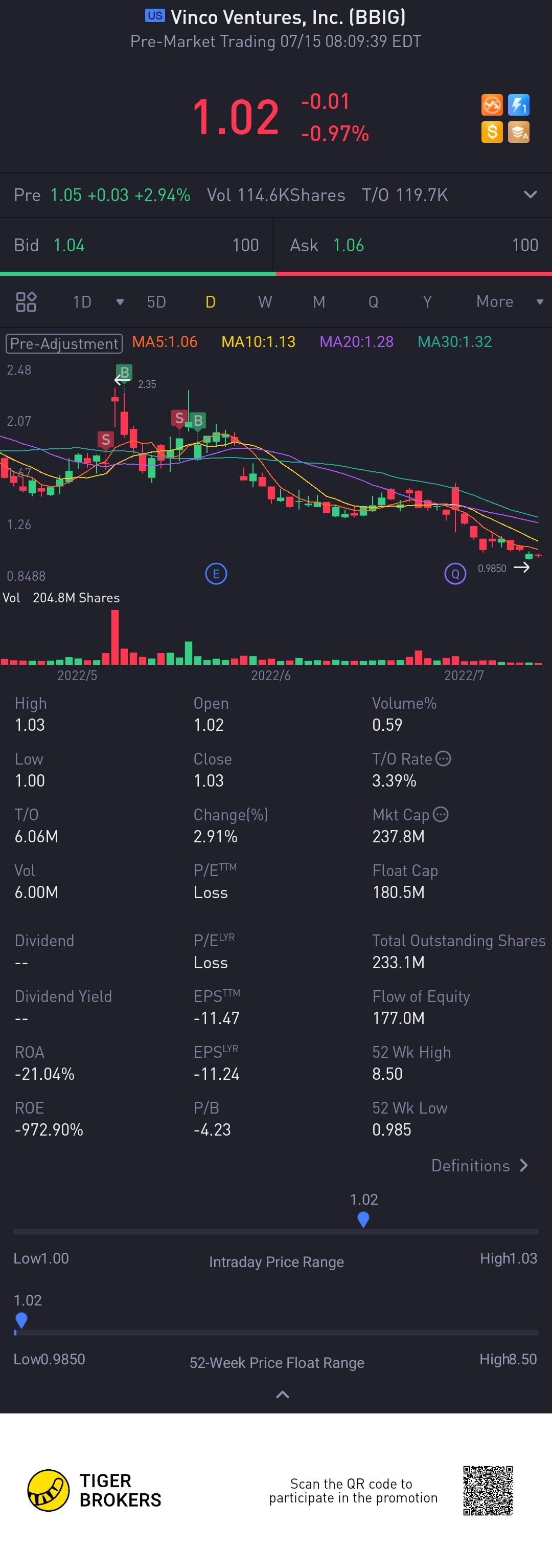 $Vinco Ventures, Inc.(BBIG)$it should be at around the bottom now. Getting ready to bounce soon.