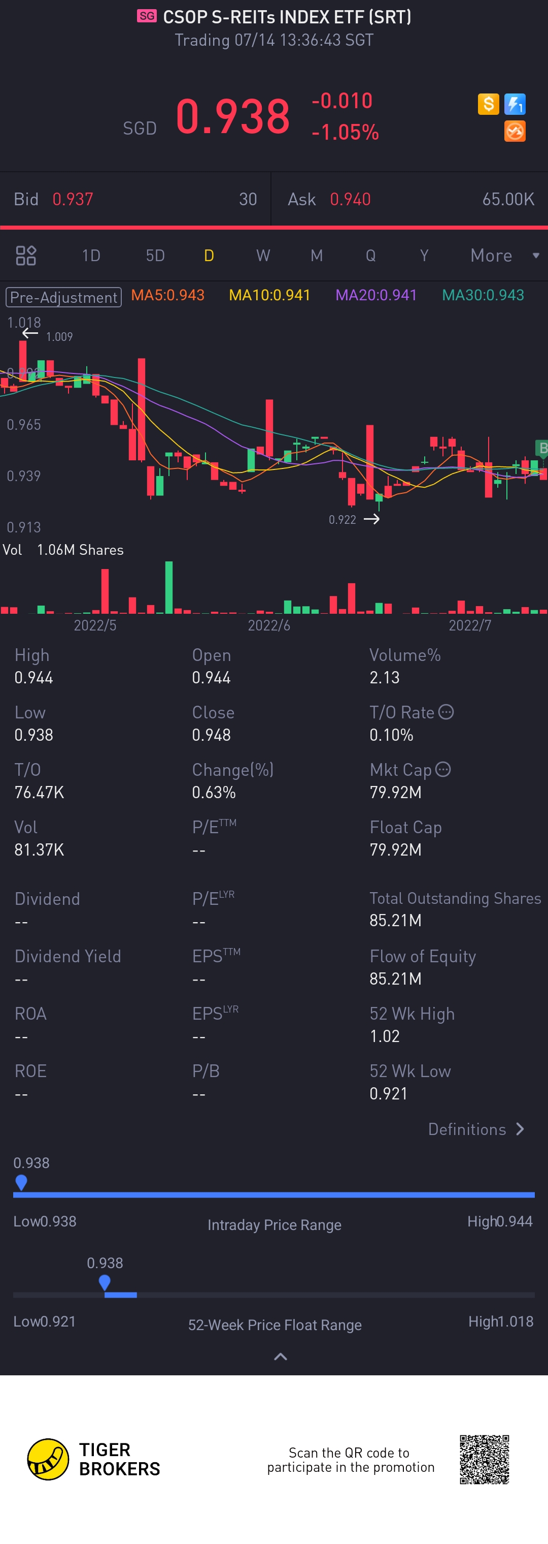 $CSOP S-REITs INDEX ETF(SRT.SI)$patience my friends. You will reap the rewards.