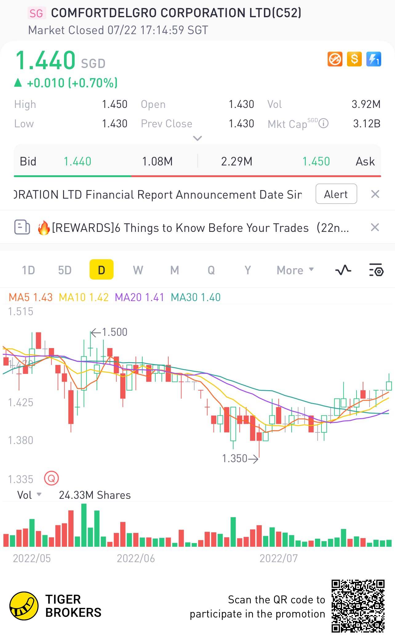 $COMFORTDELGRO CORPORATION LTD(C52.SI)$Come on!!!