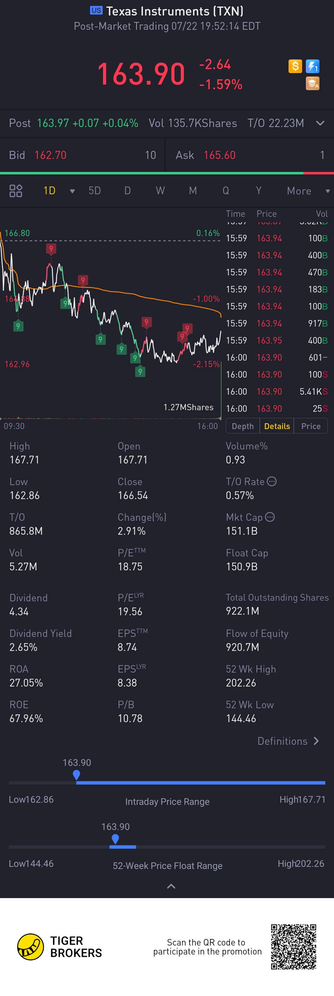 $Texas Instruments(TXN)$at current price, is it a good price to buy? do your own due diligence before you invest.