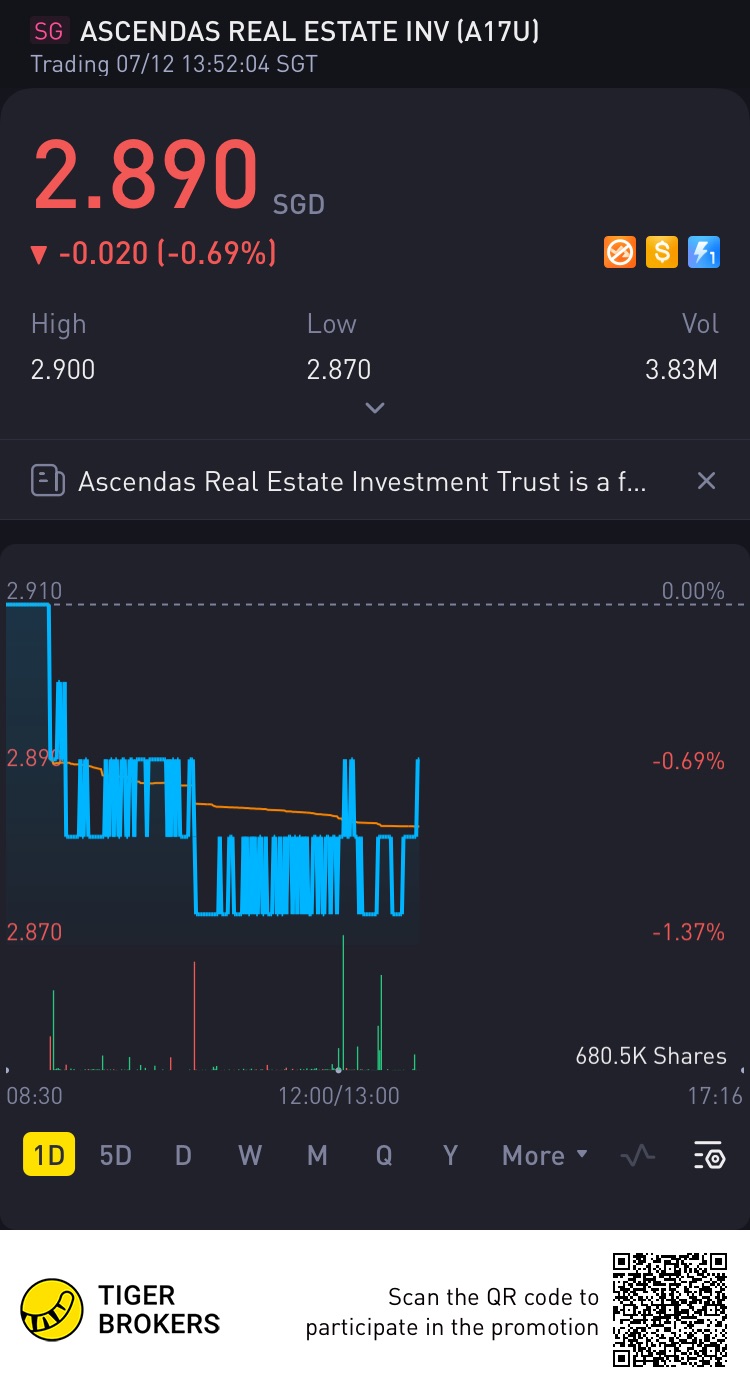 $ASCENDAS REAL ESTATE INV TRUST(A17U.SI)$A strong SG reit that is giving out dividend to hedge against inflation. [Surprised] [Surprised]