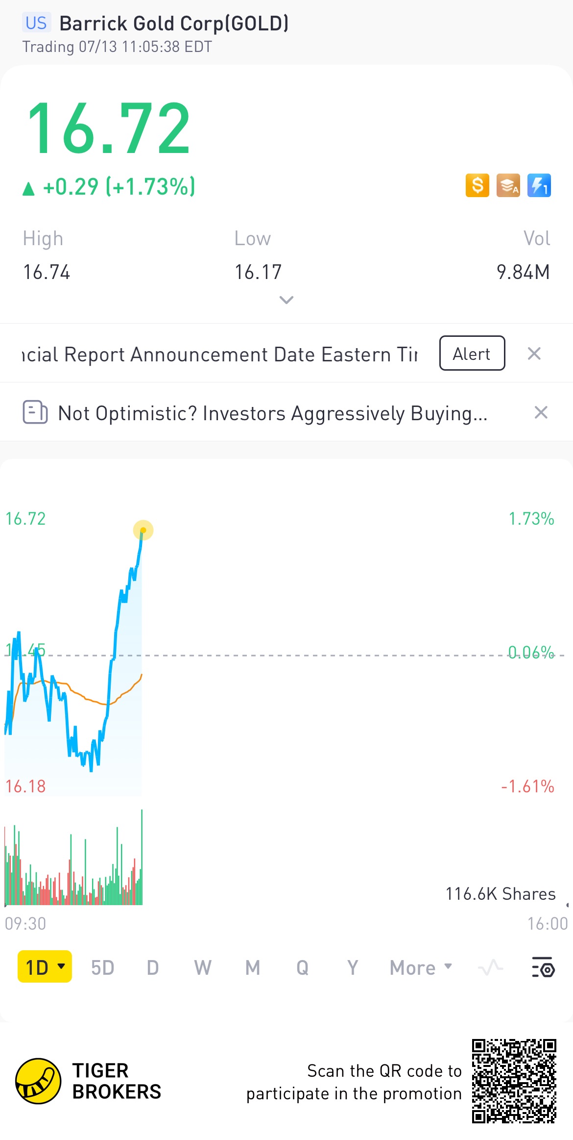 $Barrick Gold Corp(GOLD)$Up up