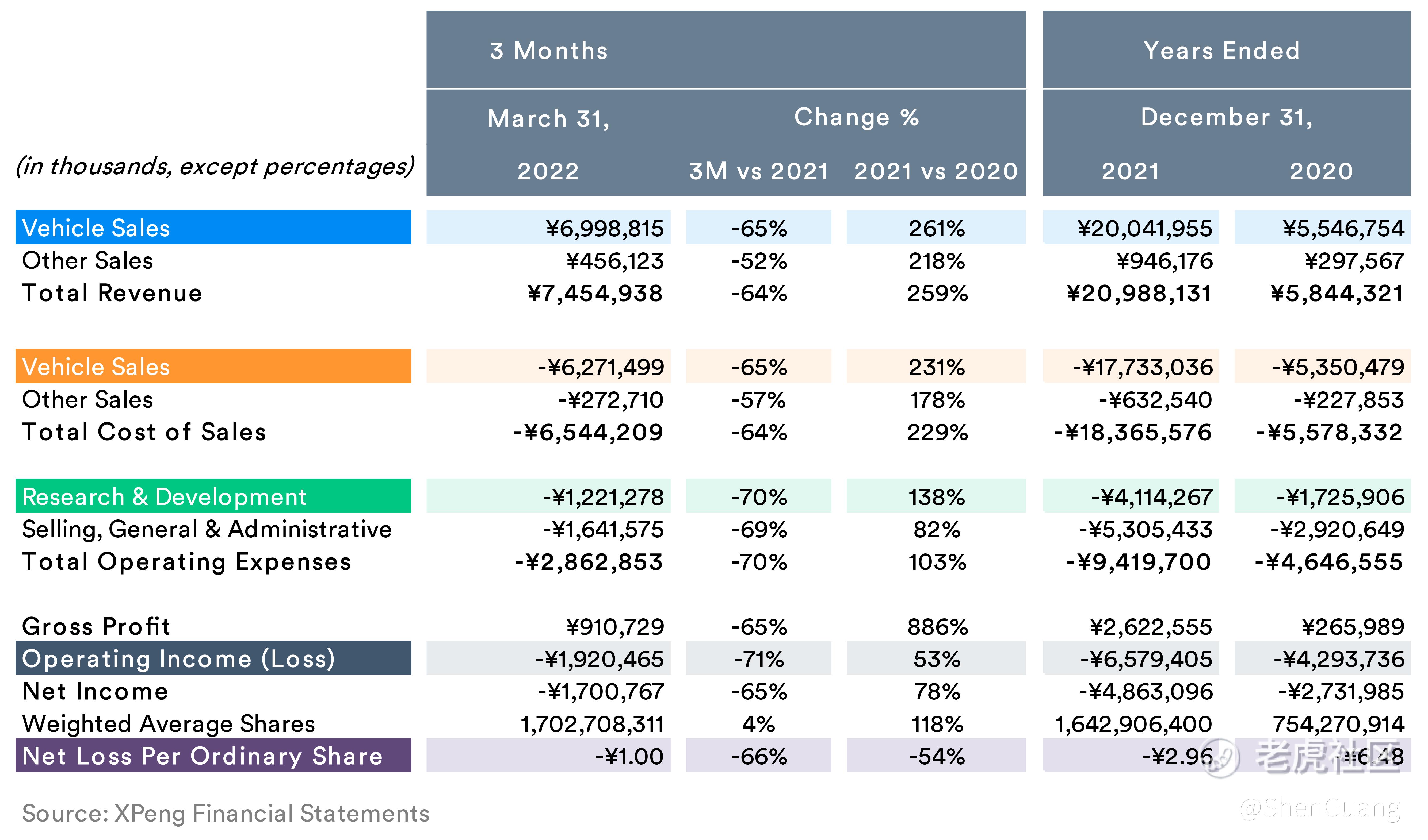 $XPeng Inc.(XPEV)$ is at a bit of a crossroads today: the company's agreement with state-owned Haima Automobile, which manufactured its G3 SUV, ended as of the 31st of December 2021. In the meantime, XPeng's Zhaoqing facility rolled out its 100,000th P7 sedan in March this year. The P7 is frequently compared to the Tesla Model 3 (and for good reason, going by its specs):