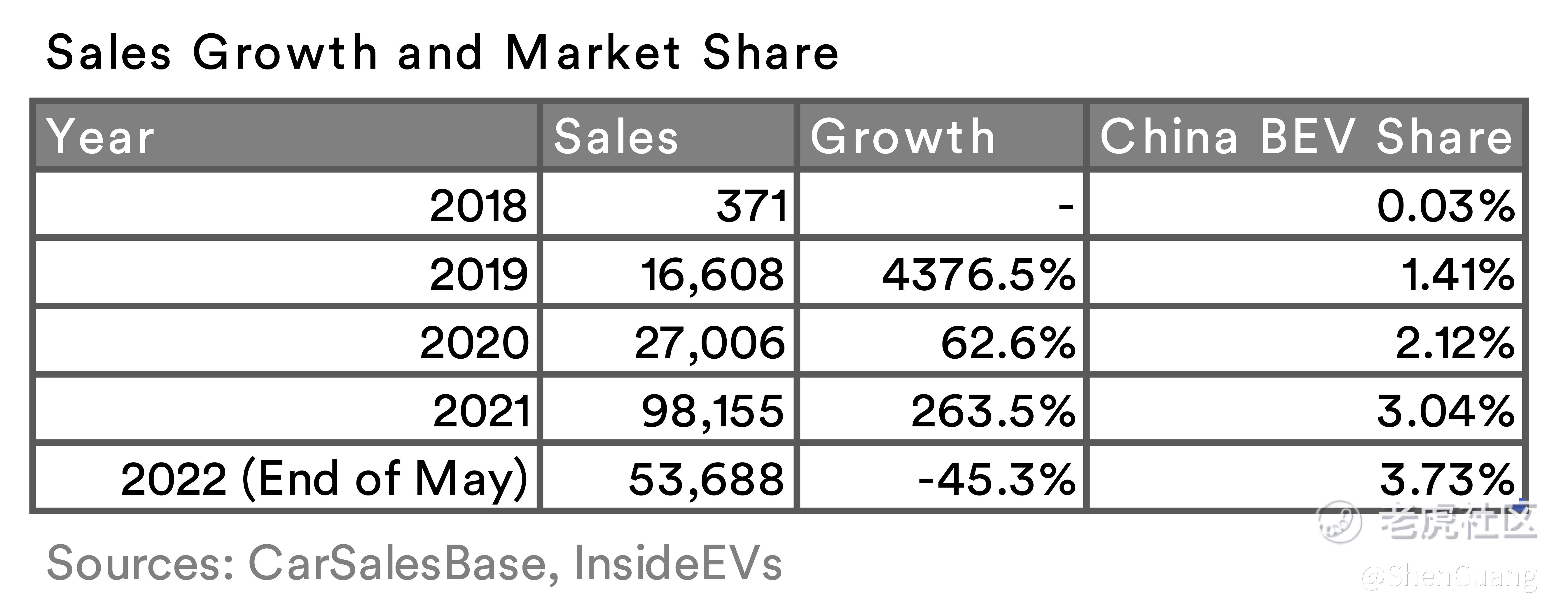 Long-time watchers of China's Electric Vehicle (EV) market will recognize the fact that the EV share in total car sales has seen a consistent uptrend. Consolidated EV sales in China for the month of June that can be confirmed against multiple sources aren't available yet. However, total "Plugin Car" sales in the first five months of the year are already 45% of that sold over the entirety of 2021.