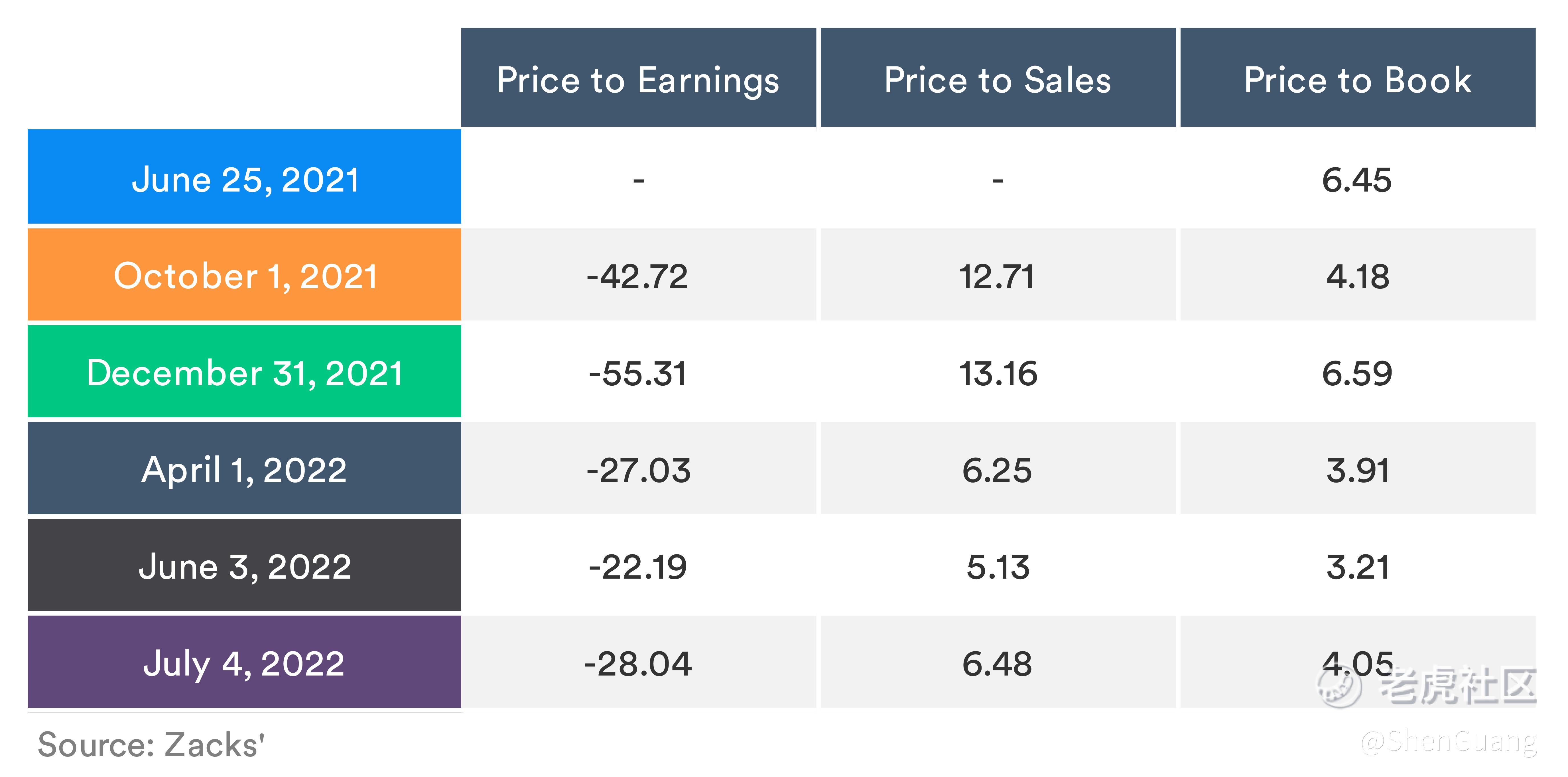 Historically, the ticker has been highly prized, leading the PE ratio to go south of negative 60 for quite some time. As "ratio cool-offs" began to manifest themselves in the U.S. market (home to the most overvalued equities in the world), the ticker had a precipitous fall until the June delivery data came in to push this ratio southward again (remember: earnings are negative; therefore the ratio goes down and not up if the stock price increases).