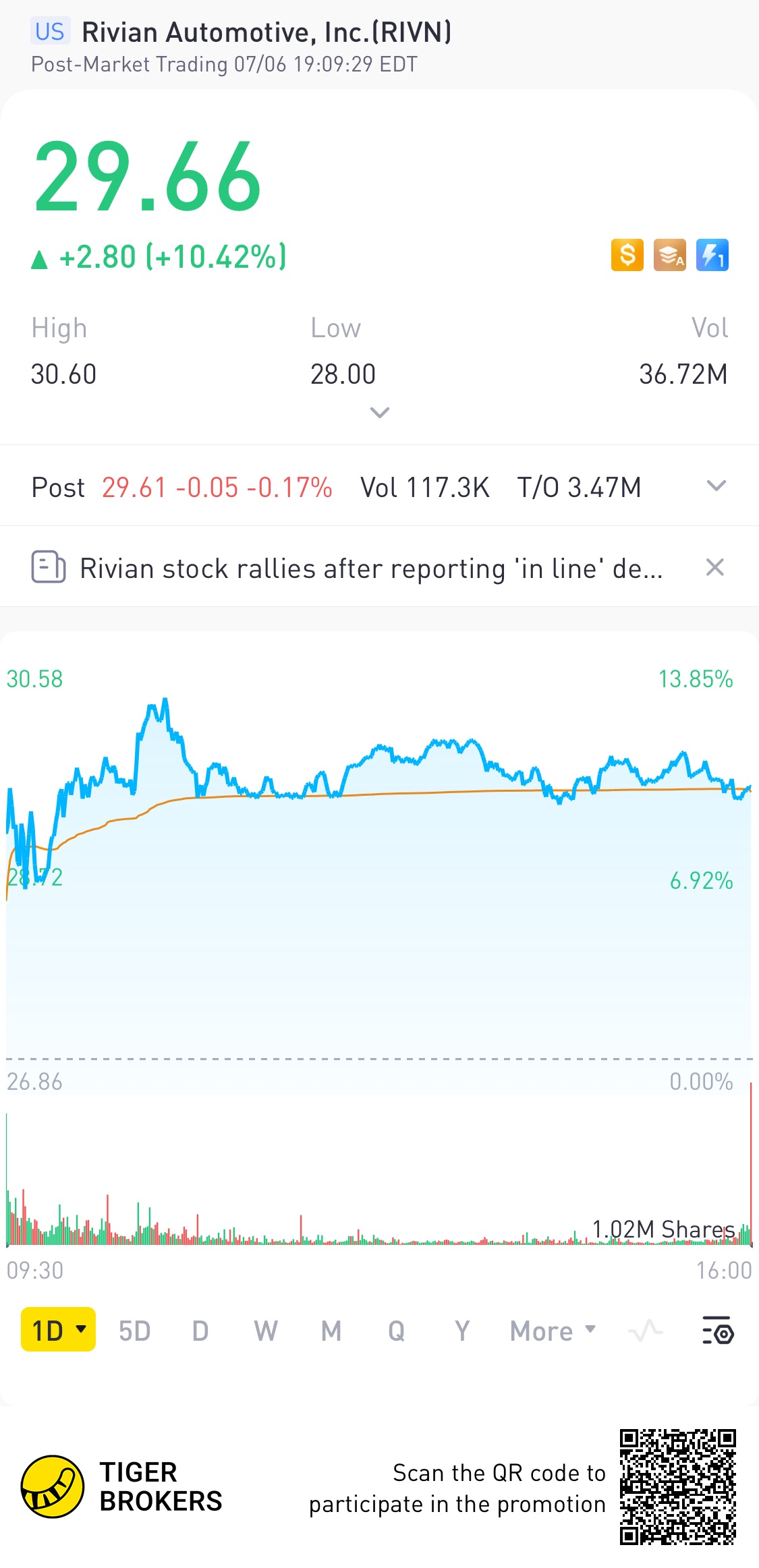 $Rivian Automotive, Inc.(RIVN)$Hasgone up more than 10% last night. Hopefull it will continue to grows and perform well