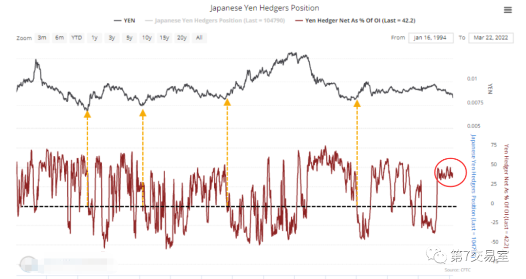From the perspective of hedging index, the hedging index of Japanese yen has shown a high net long position for more than two years,