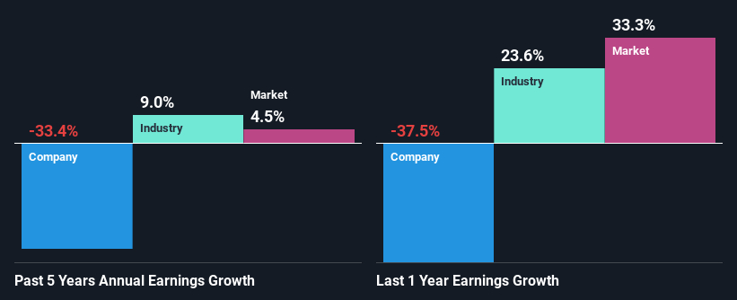 So, as a next step, we compared Singapore Telecommunications' performance against the industry and were disappointed to discover that while the company has been shrinking its earnings, the industry has been growing its earnings at a rate of 11% in the same period.