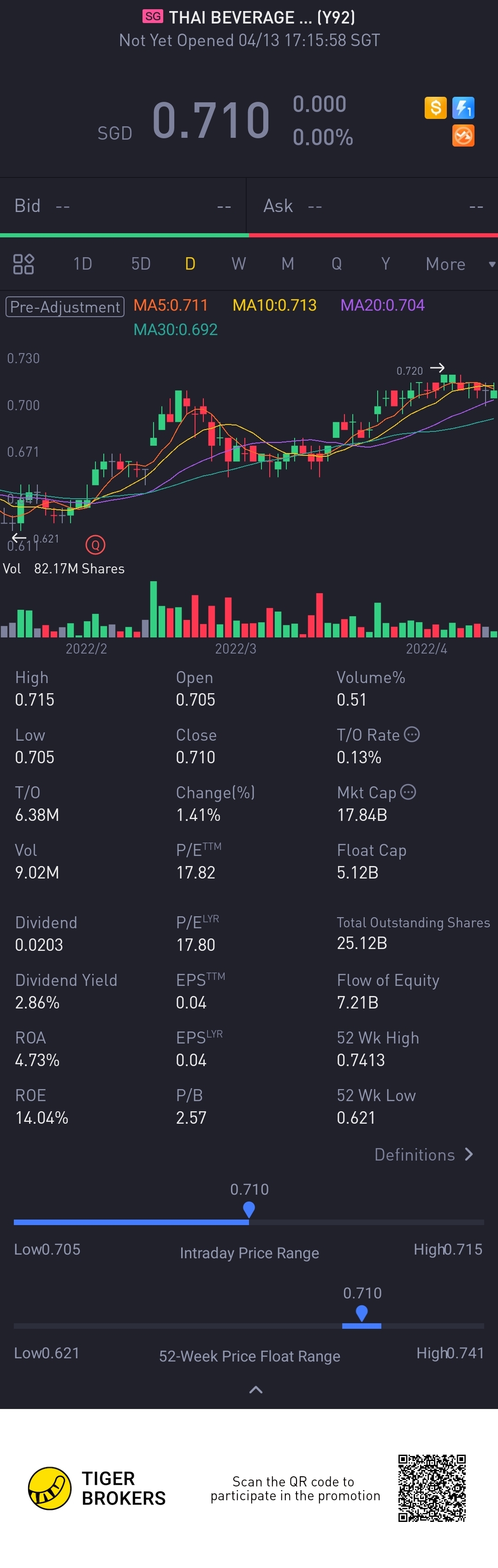 $THAI BEVERAGE PUBLIC CO LTD(Y92.SI)$undervalue stock