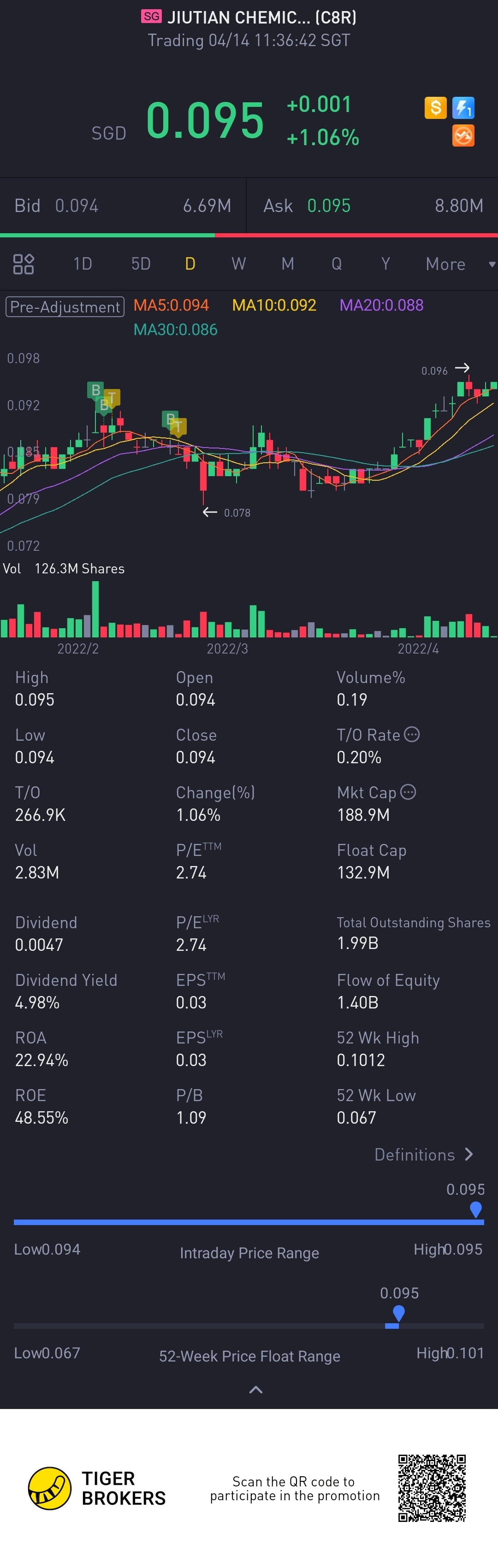 $JIUTIAN CHEMICAL GROUP LIMITED(C8R.SI)$ good buy