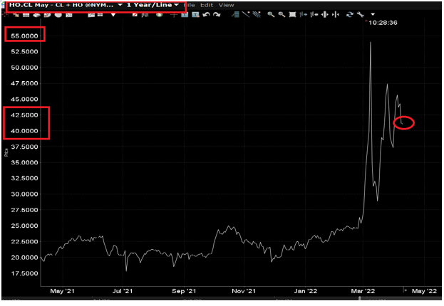There is no doubt that the release of strategic reserves of crude oil in the coming summer oil season will put great pressure on the rise of oil prices. However, the amount of crude oil that can be released at present is still far from the reduced amount of Russian crude oil in the world market. In addition, due to low oil prices for many years, countries around the world have not increased their investment in refineries, but have been closing refineries everywhere. Global refining capacity, especially in Europe, has dropped significantly compared with that before Novel Coronavirus broke out. There is a serious shortage of refined oil, especially diesel oil, in the world.The cracking price difference (HO.CL) between ultra-low sulfur diesel and crude oil owned by Chicago Mercantile Institute has exceeded the historical high level of US $40 (Figure 2).