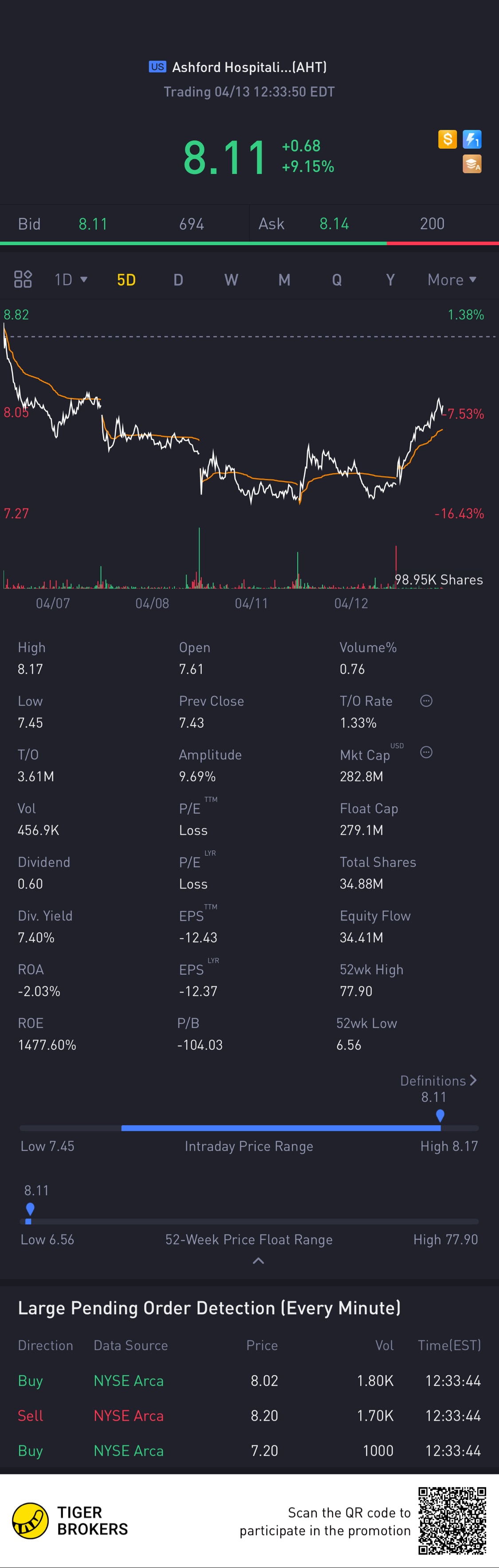 $Ashford Hospitality(AHT)$Is the rebound now?