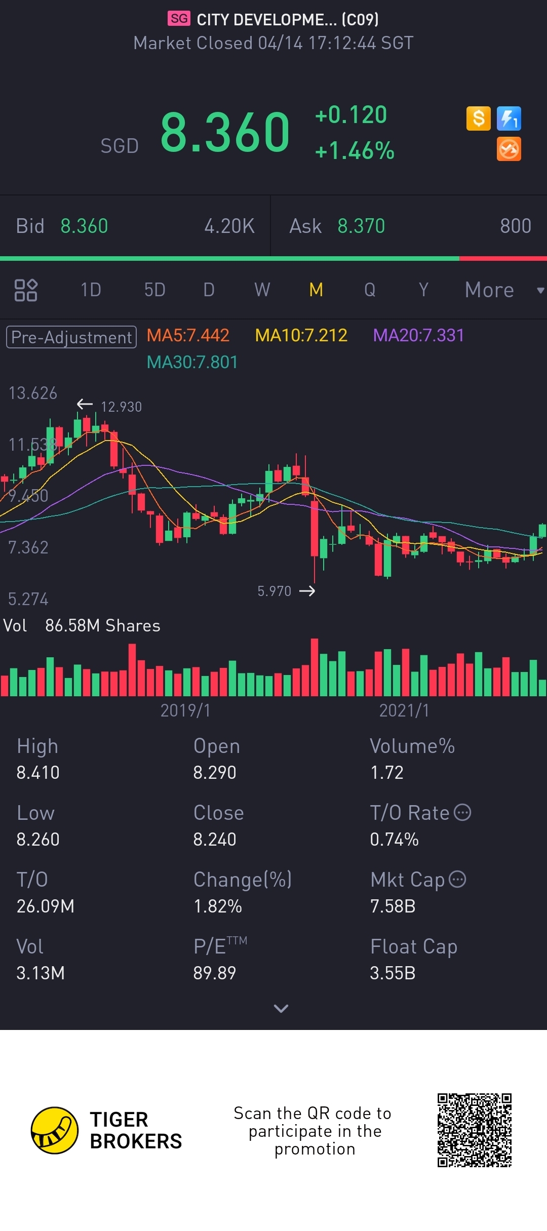 $CITY DEVELOPMENTS LIMITED(C09.SI)$8.360