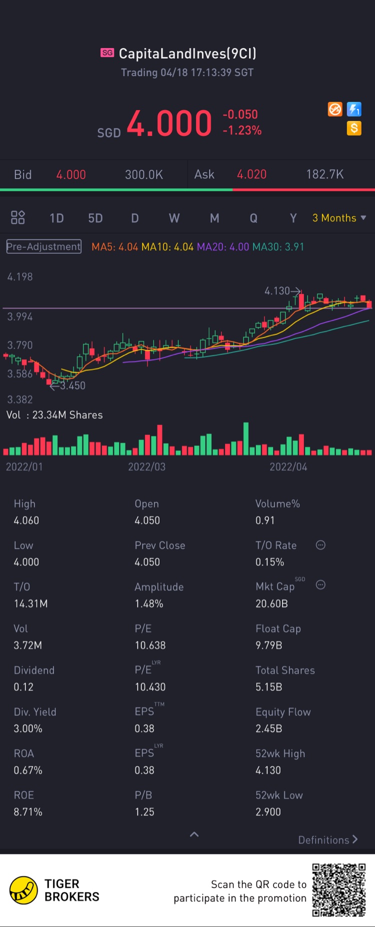 $CapitaLandInves(9CI.SI)$To add more when fallbelow $4[Cool]