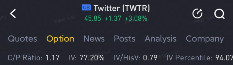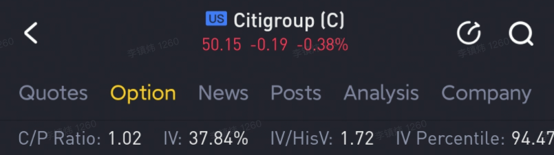 For example, TWTR's IV is higher than C's. Does it mean we can short TWTR's IV and long C's? The answer is NO. Different stocks have different IV ranges, stocks in the technology industry tend to have higher IV, so we should compare their IV percentile. They have the same IV percentile, indicating they are all at the same IV level.