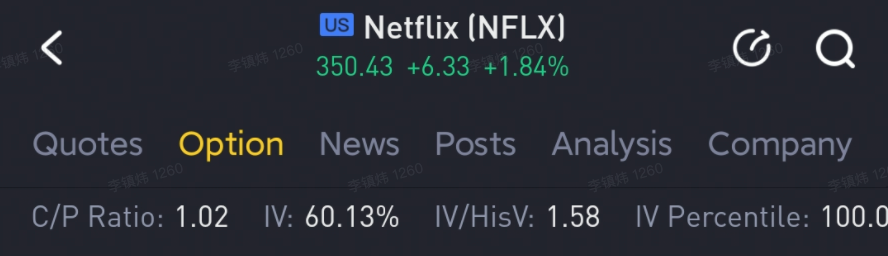 There're many strategies to use 30 Days' IV. For example, before the earnings report, the 30 Days' IV is high and IV percentile is 100.0, which means IV is at a record high compared with the past year. The market is pricing a volatile movement on the stock and making option prices fluctuate.
