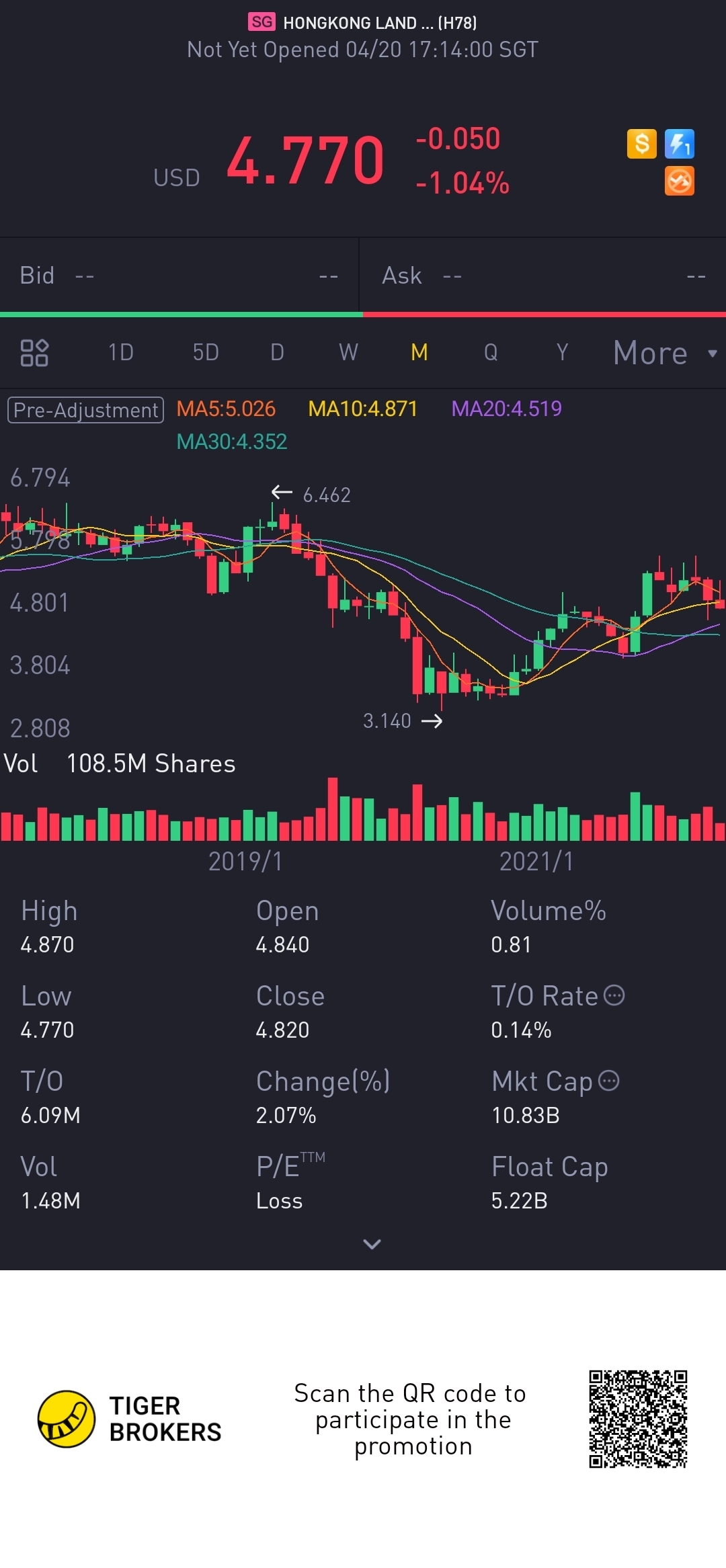 $HONGKONG LAND HOLDINGS LIMITED(H78.SI)$why still below $5?