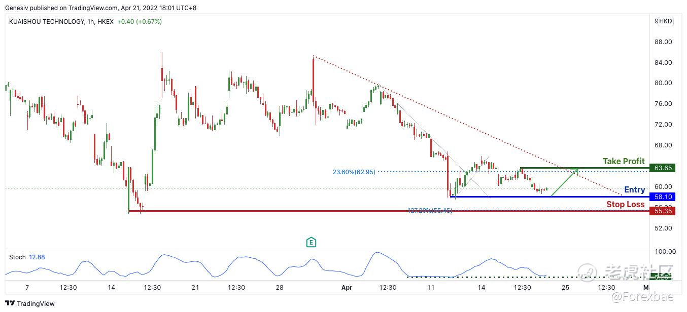 With price approaching the support of the stochastics, I do think there's a possibility of a short term pullback to the potential forming descending trendline where the 23.6% Fib retracement and last swing high is. My entry would be at the last swing low support which would align nicely with the stochastcis indicator and stop loss would be at the next swing low support where the 127.2% Fib extension is.